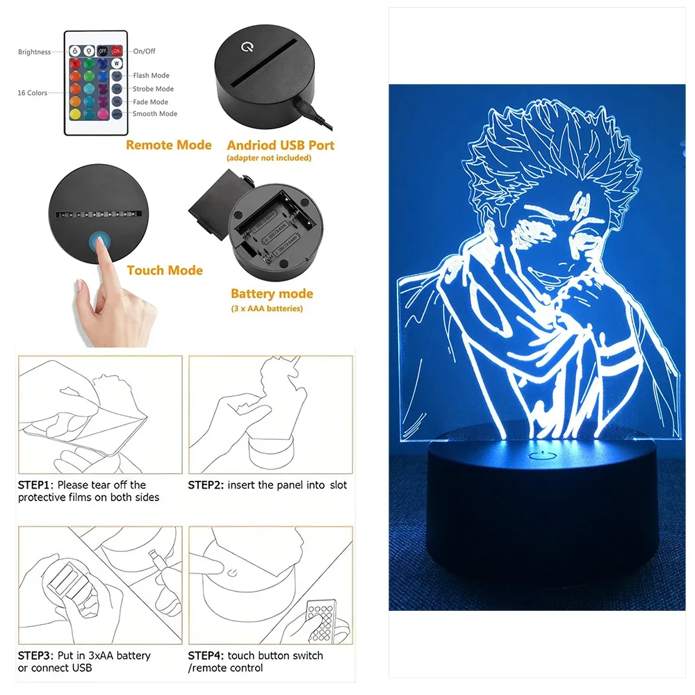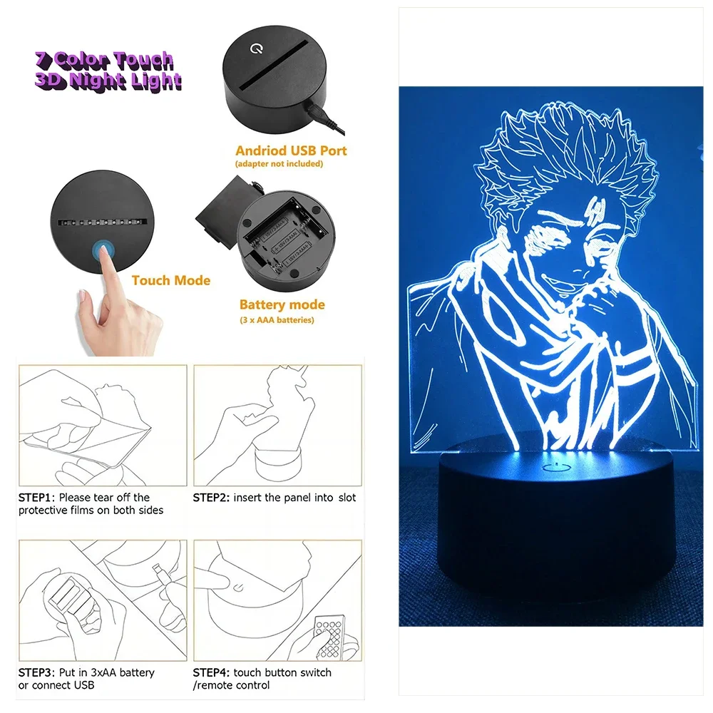 3D Anime Lamp Jujutsu Kaisen Led Night Light RGB Table Lamps Satoru Gojo Action Figure Kids Bedroom Desk Home Decor Friend