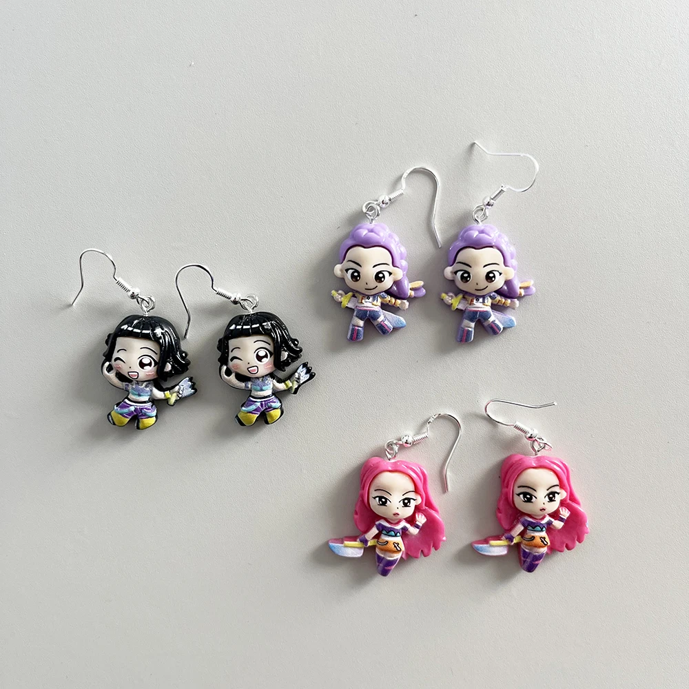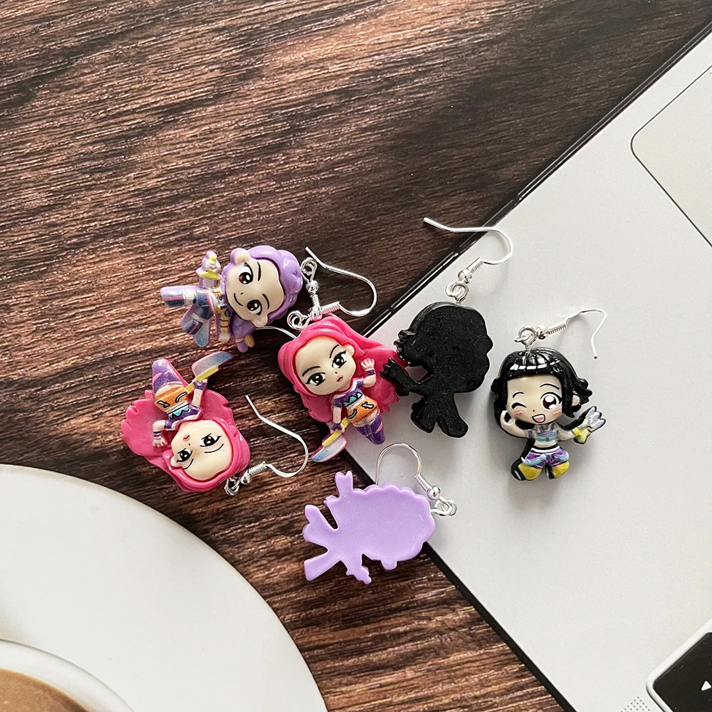 Elevate your accessory game with our 3 Pairs Kpop Demon Hunters Cartoon Character Resin Pendant Earrings Set! Perfect for fans of the Kpop and anime scene, these unique earrings feature vibrant designs that embody the spirit of your favorite characters.