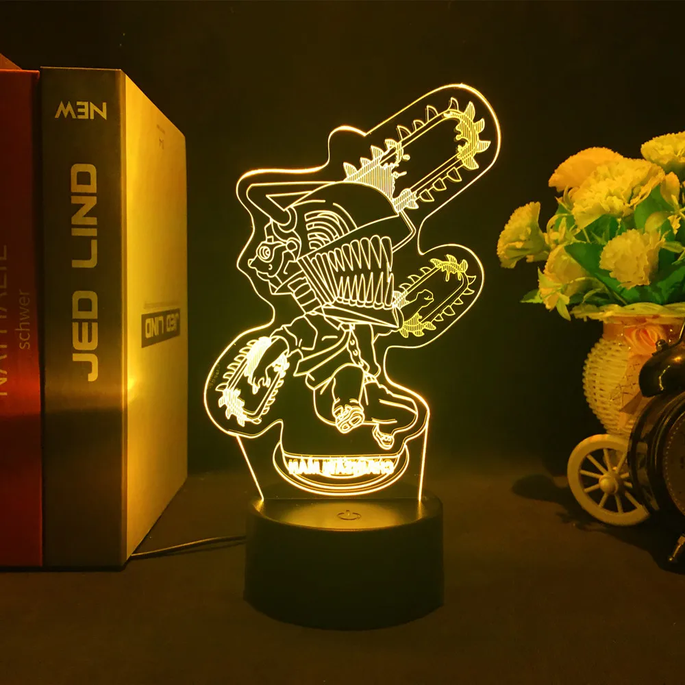 Illuminate your space with our Anime Chainsaw Man LED Acrylic Stand featuring Denji, Power, and Makima! This vibrant and eye-catching nightlight is perfect for kids' bedrooms, adding a dynamic touch of anime flair to any decor.