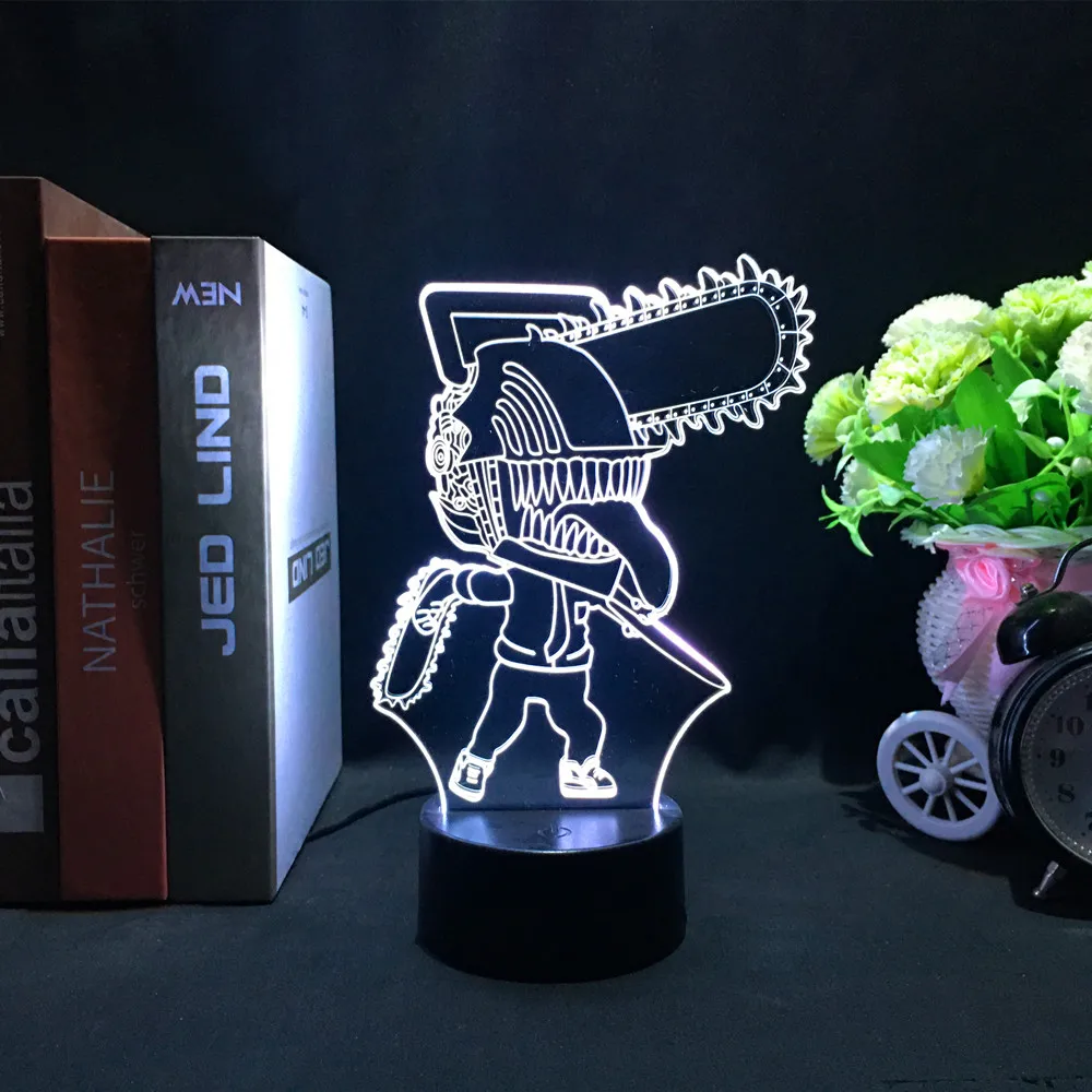 Anime Chainsaw Man Led Acrylic Stand Denji Power Makima Action Figure For Kids Bedroom Decor Nightlight Birthday