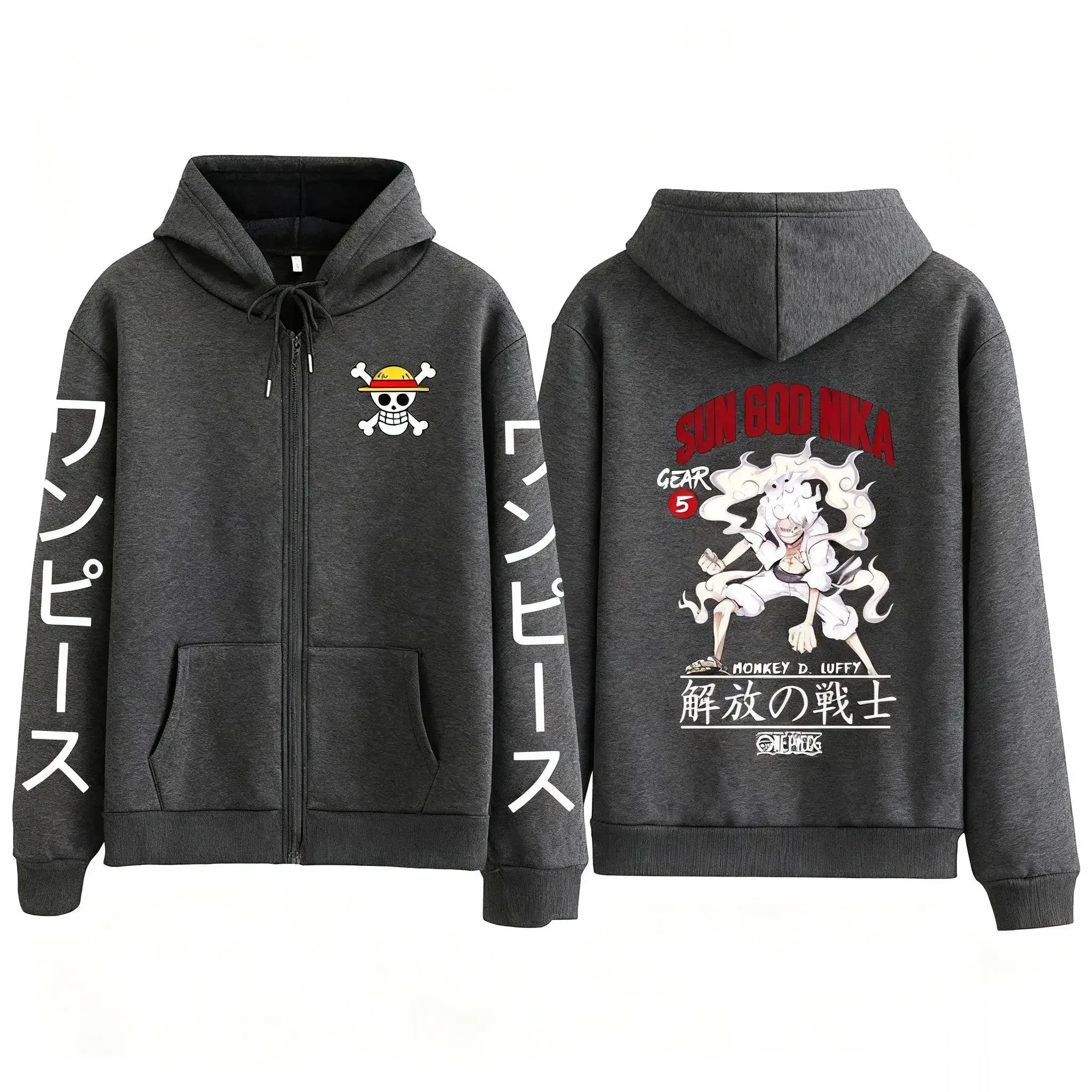 Anime Hooded Jacket One Piece Luffy Men Women Zip Up Sweatshirt Autumn Winter Fashion Graphic Print Streetwear Casual y2k Tops