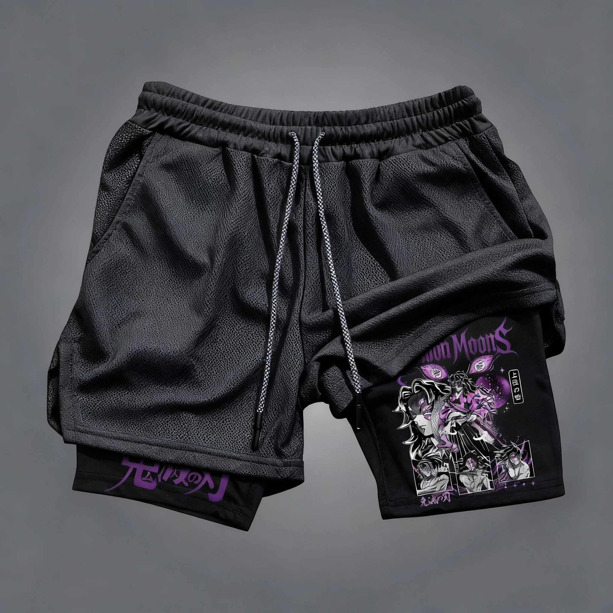 Elevate your summer workouts with our Demon Slayer Kokushibo Anime Printed Double Layer Shorts! Perfect for fitness enthusiasts, these quick-drying, breathable shorts feature a striking Kokushibo design that showcases your love for Demon Slayer.