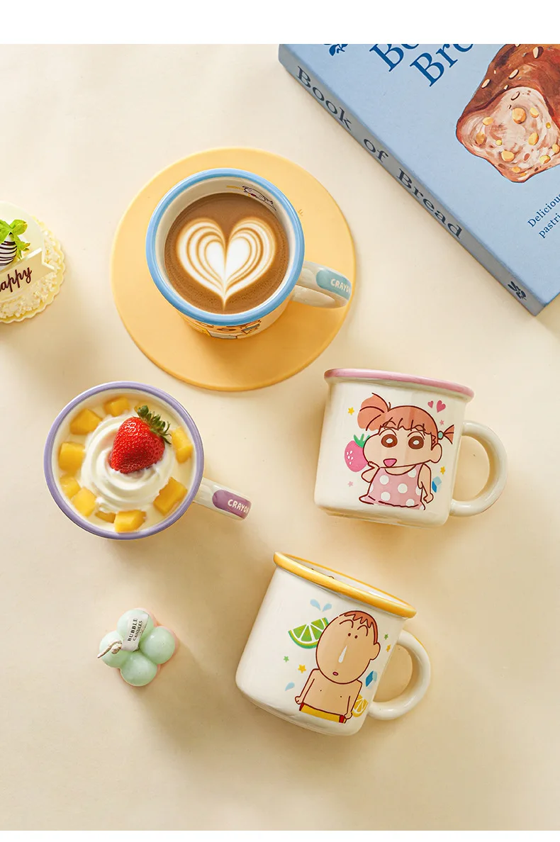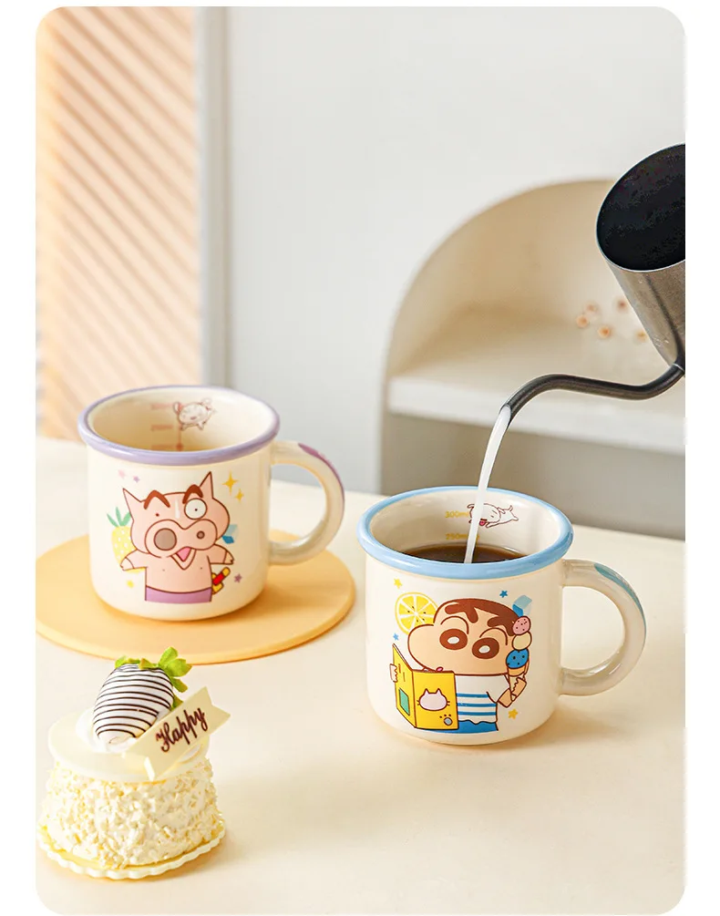 Kawaii Crayon Shin-Chan Boochan Buriburizaemon Wide Edged Mug Water Cup Cute Ceramic Cup for Girls