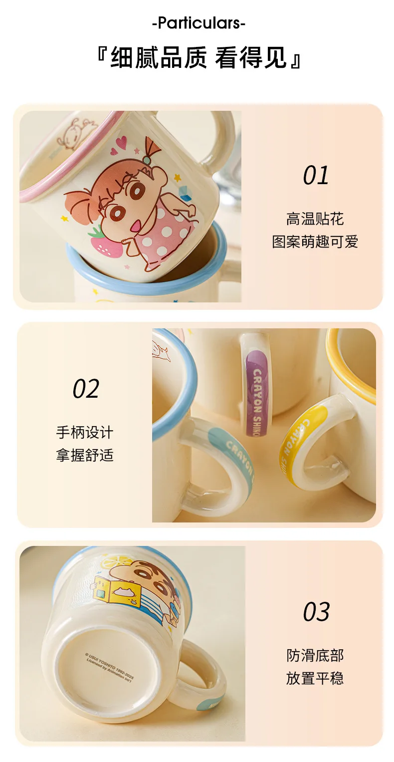 Designed with a wide edge for comfortable sipping, this cute mug is perfect for everything from morning coffee to cozy tea nights. Its adorable design is ideal for girls and Crayon Shin-Chan fans of all ages.