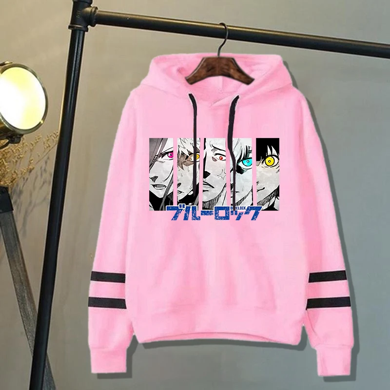 Crafted from high-quality materials, these hoodies feature a trendy stripe design and vibrant Blue Lock graphics, ensuring you stand out while staying cozy. The relaxed fit and soft fabric make them perfect for layering or wearing on their own.