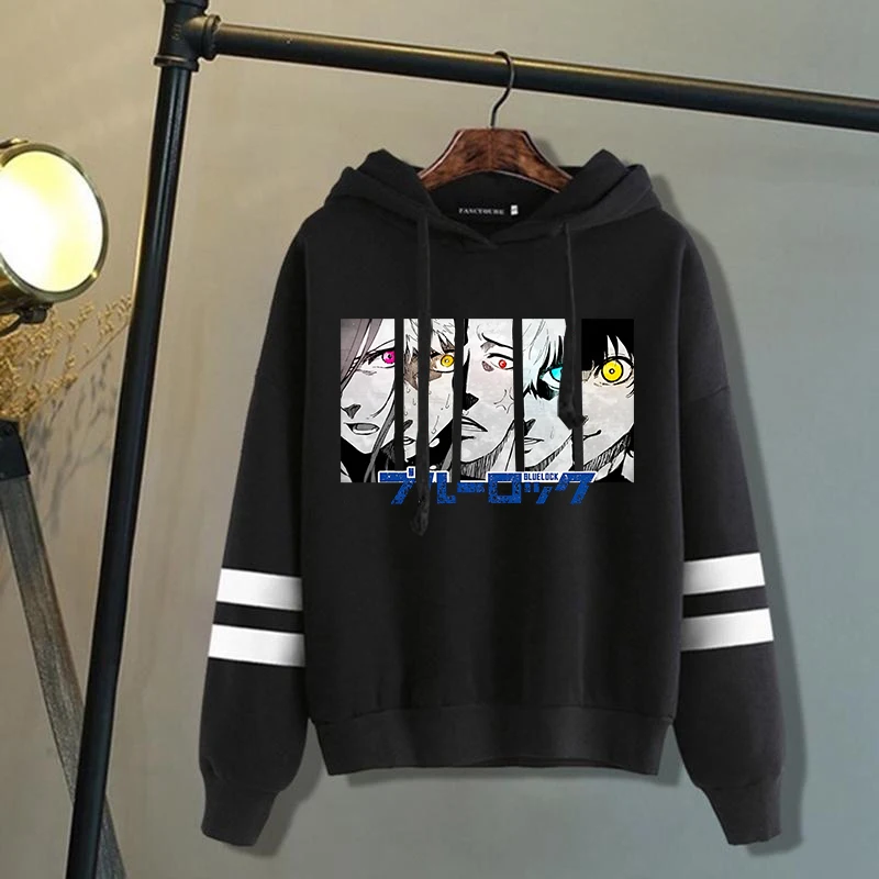 New Anime Blue Lock Pattern Print Hoodies Men Women Fashion Casual Sports Stripe Sweatshirts Ladies Pullovers Tops