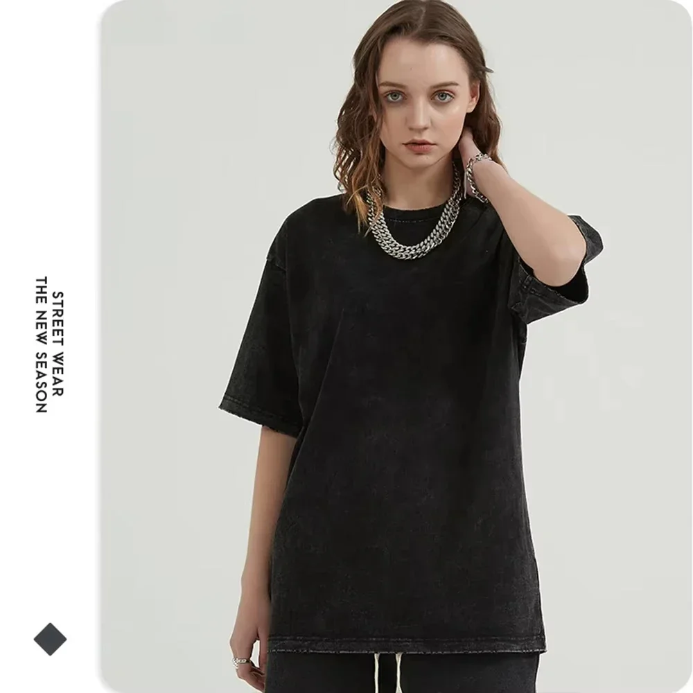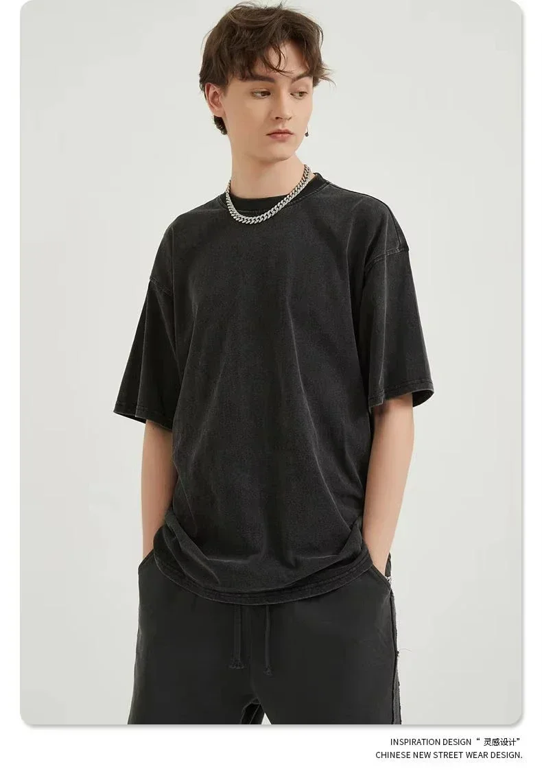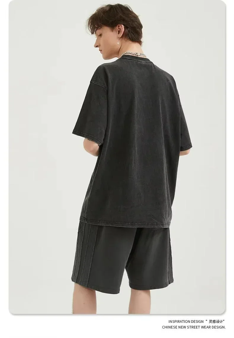 Retro Hand-drawn Shin-chan Short-Sleeved Tees American T-Shirt Oversized Washed Cotton Aged Loose Fit Casual Tops for Men Women