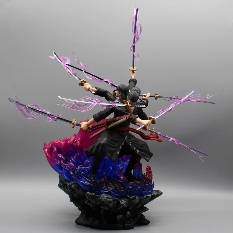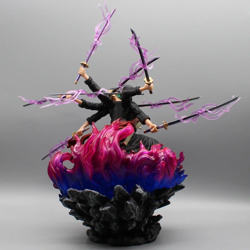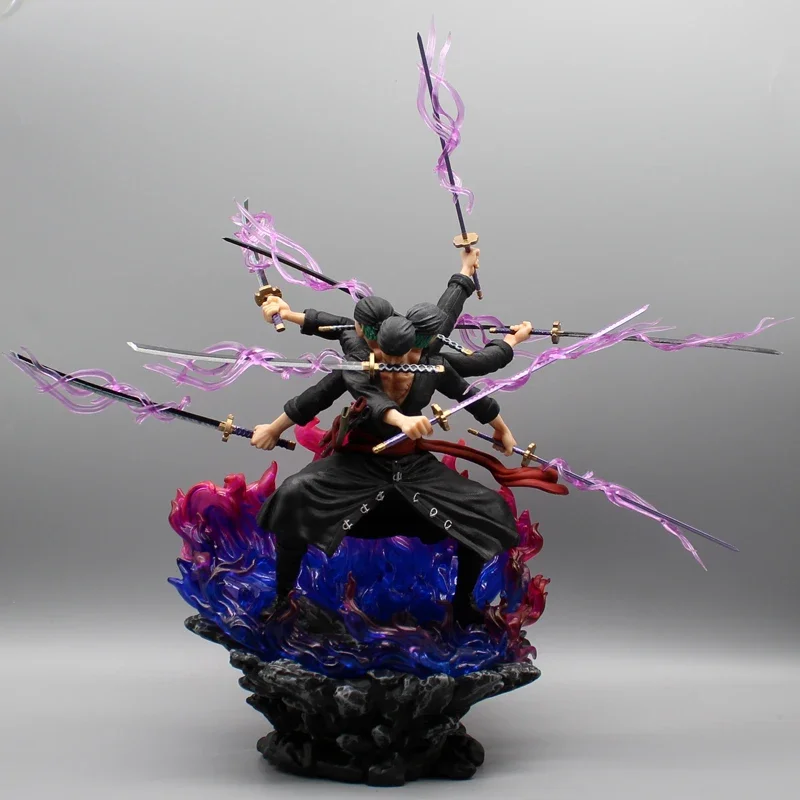 42cm One Piece Six Arms Zoro Action Figure Wano Country Statue Nine Knives Flow Roronoa Zoro Figure Model PVC Collection Toys