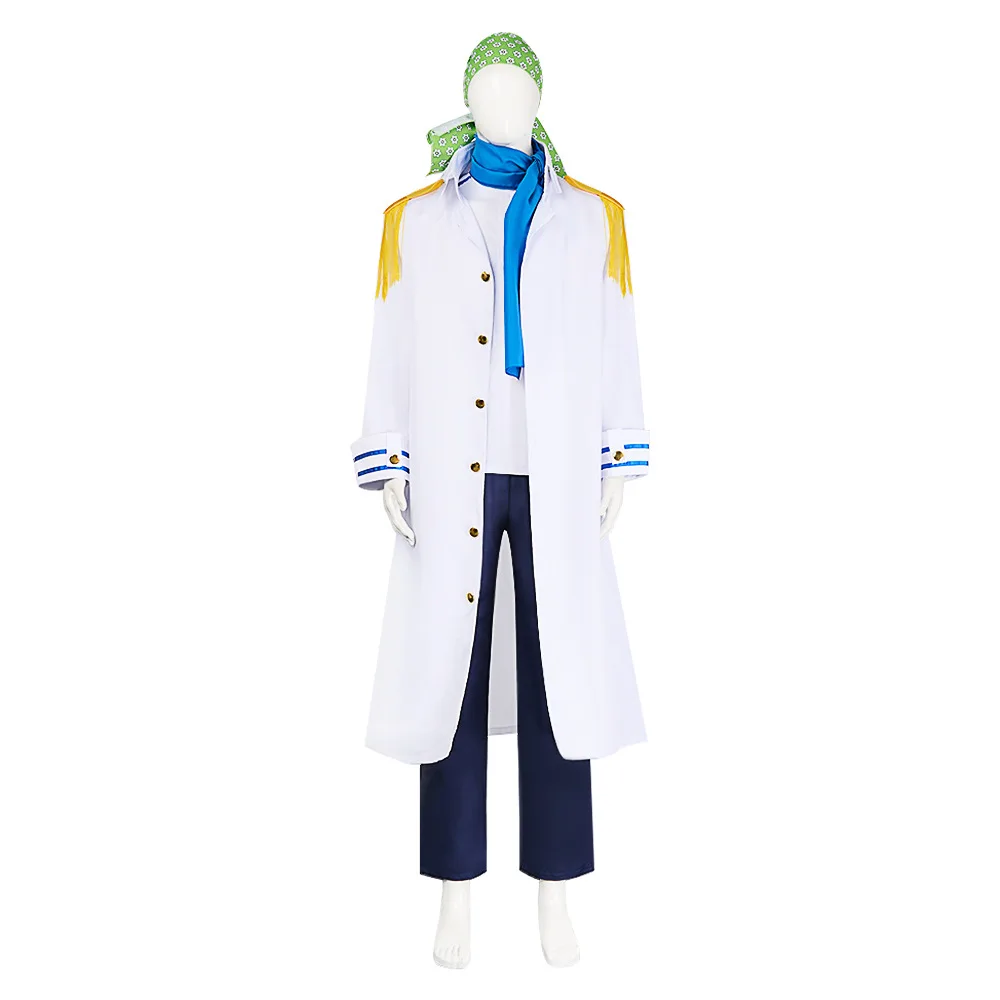 Anime One Piece Koby Cosplay Costume Full Set - Marine Captain Uniform with, Premium Halloween Stage Performance
