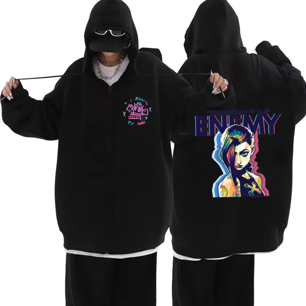Arcane Jinx Zip Up Jackets Boom Game Lovers Graffiti Hoodies Harajuku Men Women Casual Long Sleeve Sweatshirt Hip Hop Streetwear