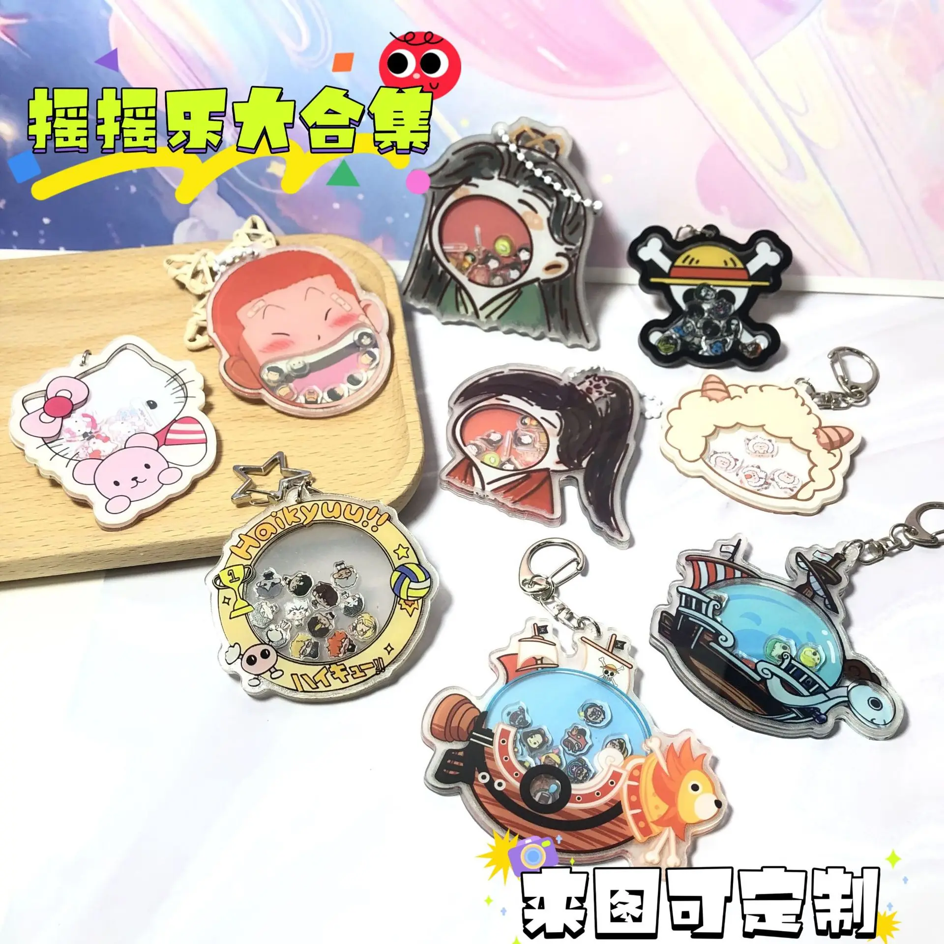 Cute one Piece Personalized Backpack Keychain Pendant Straw Hat Set Acrylic Pendant Rocking Music Student Accessories