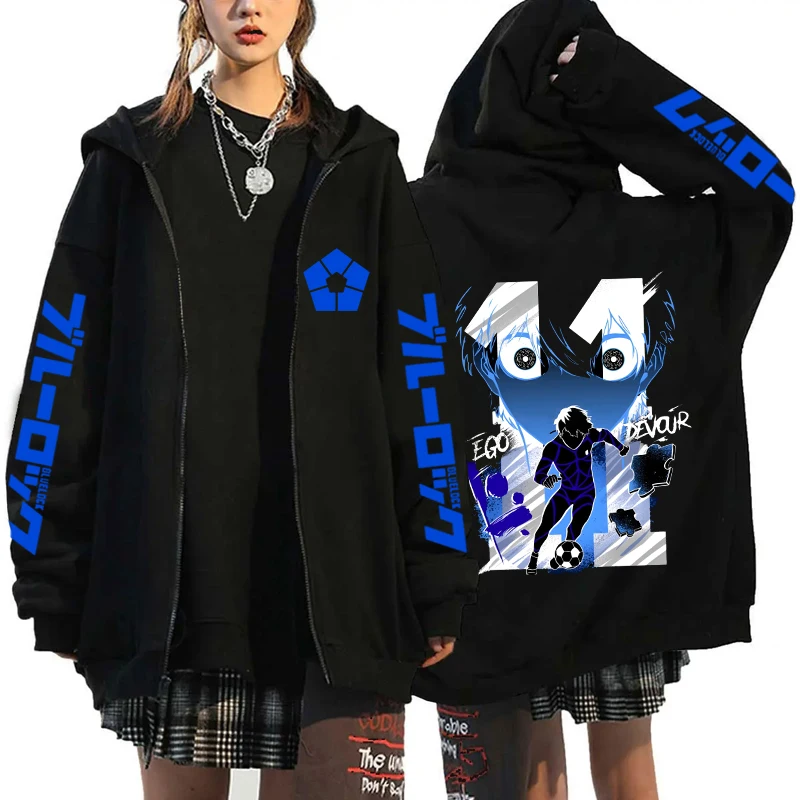 Hot Anime BLUE LOCK Printing Hoodie Fashion Harajuku Zipper Hoodies Women Men Sweatshirt Zipper Long Sleeve Casual Tops