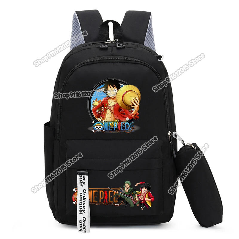 One Piece Luffy Zoro Backpack Kits Boy Student Usopp Chopper Anime Knapsack with Pencilcase Rucksack High-capacity Schoolbag
